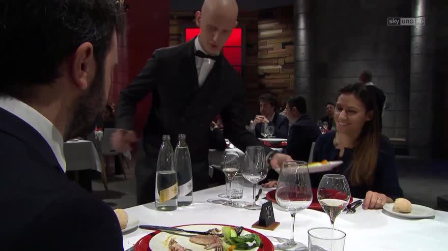 Chef Cracco è molto arrabbiato per il servizio e non molla un attimo i suoi cuochi. Vuole più precisione.