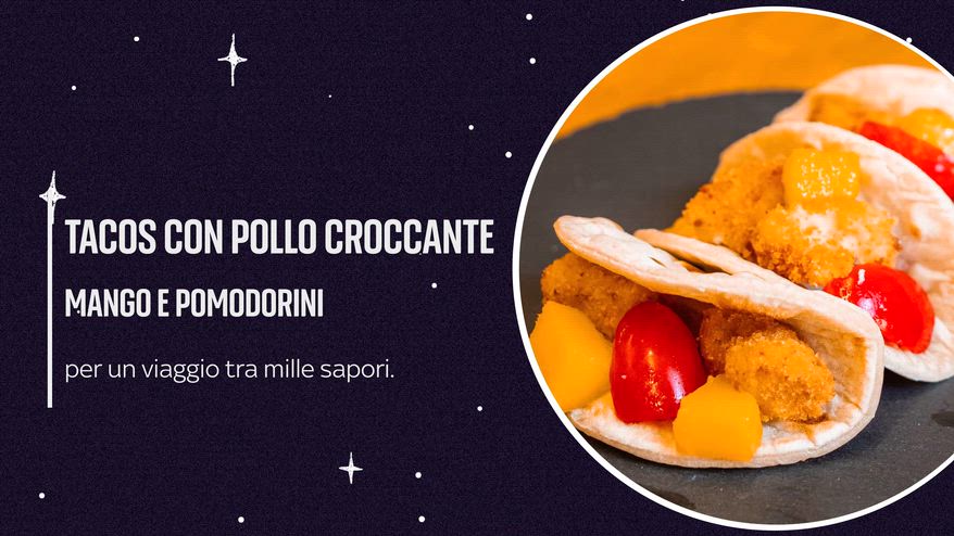Gemelli, tacos con pollo croccante, mango e pomodorini