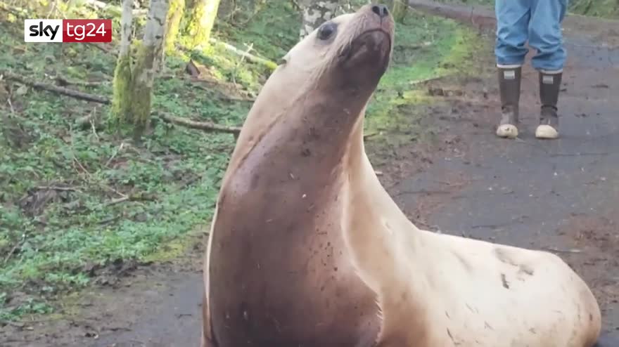Washington, l'inaspettato incontro com un leone marino in strada