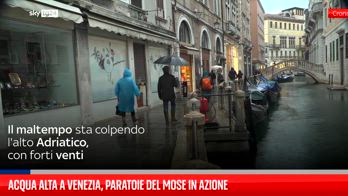 Acqua alta a Venezia, paratoie del Mose in azione in Laguna