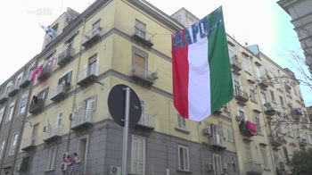 Bando alla scaramanzia. A Napoli è già febbre scudetto. Le strade vengono addobbate a festa con bandiere, magliette, drappi azzurri e street art. Qui siamo nel Rione Sanità, dove è stato appena inaugurato un nuovo murale di Maradona, El Pibe de Oro domina ora Piazza Miracoli, nell'opera dello street artist Luciano Ranieri. 10 metri di altezza e un tricolore che attende solo il numero 3. I cittadini si sono autotassati per realizzarlo e stanno continuando a farlo, qui è in tanti quartieri della città. "Ci siamo autotassati, diciamo, con una semplice cassetta e cerchiamo, nel pieno rispetto delle regole, di tappezzare tutto il quartiere di azzurro." "Anche lei ha lasciato un contributo?" "Si,si, logicamente si. Io e altri commercianti del quartiere." "Perché dobbiamo festeggiare. Dopo 33 anni bisogna festeggiare. Io sono capace di chiudere quella giornata. Si è probabile." Forcella sembra essere tornata hai fasti dell'ultimo scudetto, più di un 30ennio fa, colorata completamente d'azzurro e con le sagome dei giocatori. Un lavoro in progress quello dei napoletani, che giorno dopo giorno continuano ad arricchire le strade di simboli che celebrano l'amore viscerale di questa città per la sua squadra. Quartieri Spagnoli, un po' ovunque, ormai tinta d'azzurro. Eccoci a Salita Paradiso, decine di bandiere incorniciano la scalinata azzurra sulla quale, enorme, campeggia già il terzo scudetto.