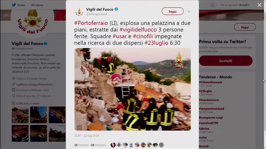 Elba, esplosione nella palazzina: due dispersi