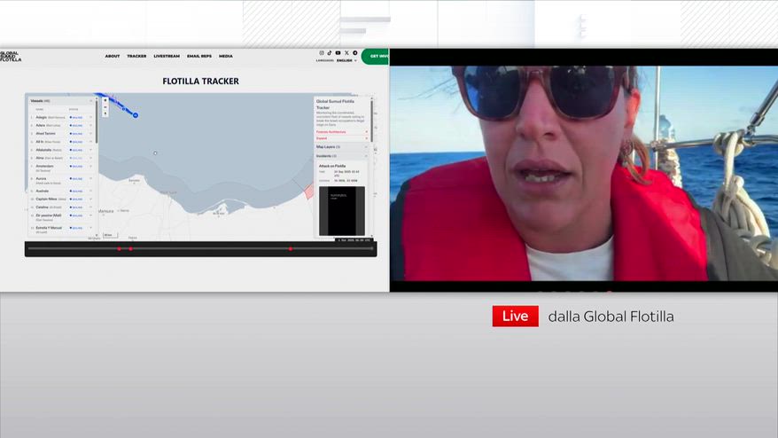 "Alla velocità di crociera a cui stiamo procedendo, come vedete c'è un bel po' di mare dietro che ci spinge l'arrivo potrebbe essere nel primo pomeriggio di domani, ammesso e non concesso che ci facciano avvicinare con gli aiuti umanitari, quindi con l'unico obiettivo che è quello di aprire un canale umanitario sicuro per una popolazione affamata e stremata da un genocidio. Quello che sta succedendo a livello di politica estera non è particolarmente incoraggiante, anzi, il tempo sta scadendo. Noi abbiamo ancora poche ore di navigazione prima di essere piuttosto certi che riceveremo uno stop e che riceveremo non un arresto, ma un rapimento, perché appunto non sta dentro il diritto internazionale.".