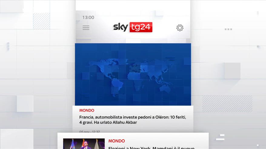 In Francia un uomo inneggia ad Allah e investe deliberatamente 10 persone, tre sono in gravi condizioni, è accaduto nell'isola di Oléron, sulla costa atlantica. Nuova allerta per i droni sospetti nei cieli dell'Europa, chiusi gli aeroporti di Bruxelles e Liegi, il Belgio convoca il Consiglio di Sicurezza, gli scali sono stati riaperti. L'Unione Europea trova l'intesa sul clima, accordo tra i Ministri dell'Ambiente e sul taglio delle emissioni del 90% entro il 2040 con punti di flessibilità soddisfatta l'Italia. 34 anni musulmano democratico, Zohran Mamdani è il nuovo Sindaco di New York, il primo messaggio per Trump, "La città che lo ha fatto nascere, mostra come sconfiggerlo", dice. A Roma lutto cittadino per la morte dell'operaio nel crollo della Torre dei Conti, inquirenti al lavoro per accertare le cause si indaga per omicidio e disastro colposi. Lasciò la figlia in condizioni disumane, così la Procuratrice di Milano, nella requisitoria del processo d'appello ad Alessia Pifferi, chiesta la conferma dell'ergastolo. Dalla rinuncia alla Davis alle sue origini Sinner si racconta in esclusiva Sky a Sport "Orgoglioso e felice di essere nato in Italia" dice il numero 1 dell'ATP. Napoli e Juventus non vanno oltre il pari, il cammino in Champions resta in salita, stasera tocca Inter Atalanta, intanto De Rossi sarà il nuovo allenatore del Genoa. .