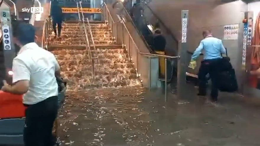 Maltempo a Genova, la stazione allagata e i fulmini in città