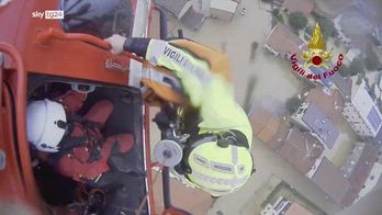 A Meda una bambina di 10 mesi e la madre sono state salvate da un elicottero dei vigili del fuoco dopo essersi rifugiate sul tutto per sfuggire al maltempo che ha colpito la Brianza. Un soccorritore si è calato dal velivolo per issare in una culla speciale la bambina e poi la madre. .