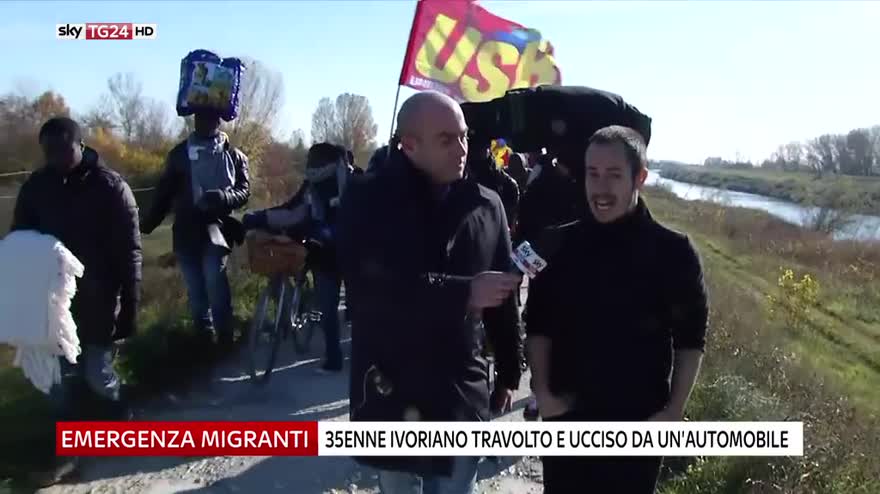 Migranti in marcia dalla tendopoli di Cona a Venezia