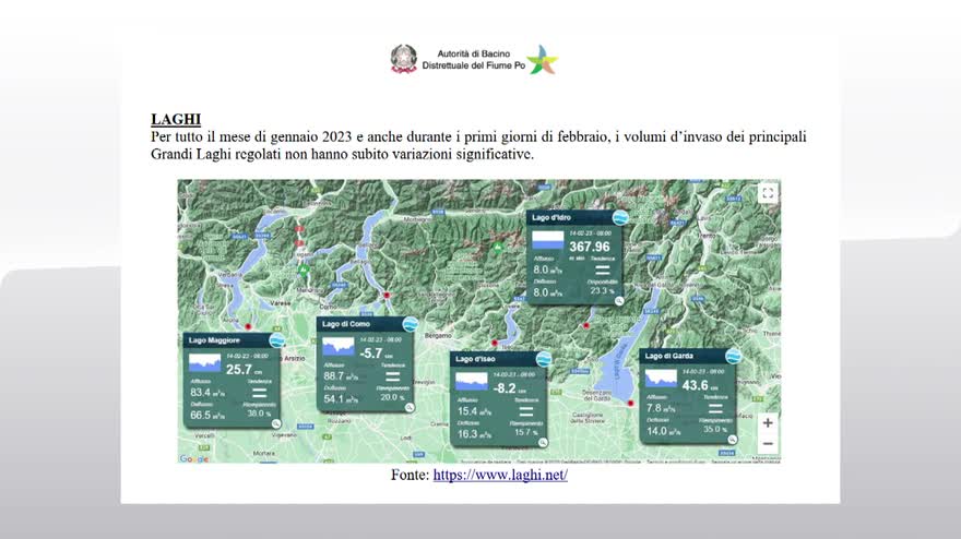 Una lunga distesa di sabbia, la spiaggia dentro il Po a febbraio. È l'immagine della crisi idrica, a Piacenza il fiume registra nuovi minimi storici. In pieno inverno come in estate, è così scarsa la portata del Po, che sono scoperte anche le fondamenta del ponte che collega l'Emilia Romagna alla Lombardia. Nel bacino del Po la situazione è leggermente diversa rispetto allo scorso anno perché nella parte più meridionale è nevicato ma il rialzo delle temperature previsto per i prossimi giorni potrebbe portare a un veloce discioglimento. "La scarsità di precipitazioni in questo periodo sia piovose ma soprattutto nervose nella parte Nord-Ovest del bacino, c'è una crisi dei grandi laghi che hanno dei livelli molto bassi, al di sotto fortemente della media, ripeto, il fatto che non nevichi e non piova in quelle situazioni nell'arco alpino crea una serie di preoccupazioni per la prossima stagione irrigua. Il cambiamento climatico ha trasformato l'emergenza siccità in un problema strutturale, occorre raccogliere e conservare l'acqua quando c'è, serve una rete di piccoli e grandi invasi e di colture meno idroesigenti. "Sarà sicuramente un periodo critico però diciamo è un traguardo, che può essere quello di realizzare quelle opere indispensabili che sono opere in alcuni casi importanti anche da un punto di vista infrastrutturale".