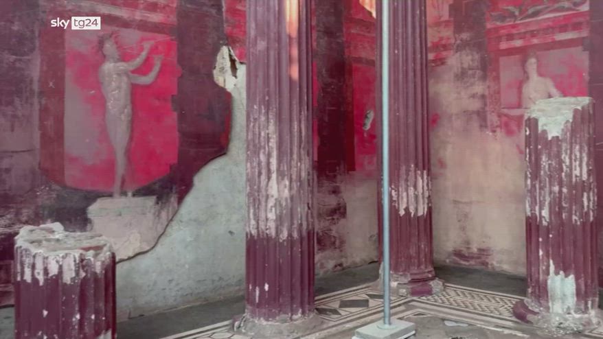 A Pompei gli scavi dell’antica città romana hanno permesso di scoprire un affresco che ritrae la divinità greca Dioniso. Il dipinto circonda su tre lati una sala da banchetti, ribattezzata “casa del Tiaso”, e racconta l’iniziazione ai misteri dionisiaci.
