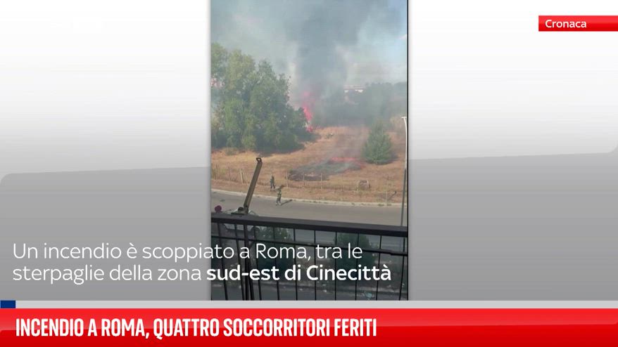Un incendio è scoppiato a Roma, tra le sterpaglie della zona sud-est di Cinecittà. Un vigile del fuoco e tre volontari della protezione civile sono rimasti gravemente feriti durante le operazioni di soccorso. I video registrati da testimoni oculari mostrano l'incendio che si propaga tra la vegetazione vicino alle case. .