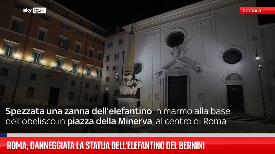Spezzata una zanna dell'elefantino in marmo alla base dell'obelisco in piazza della Minerva, al centro di Roma. .