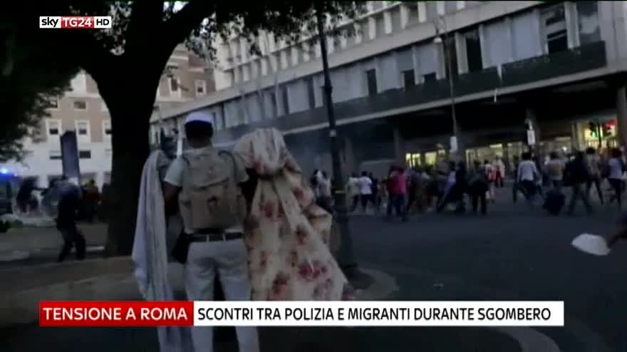 Roma: scontri tra polizia e migranti durante sgombero