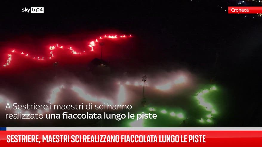 A Sestriere, in provincia di Torino, un gruppo di maestri di sci ha realizzato una fiaccolata lungo le piste innevate. Gli atleti hanno percorso le discese dando vita a spettacoli di luci che rimandano alla bandiera italiana.