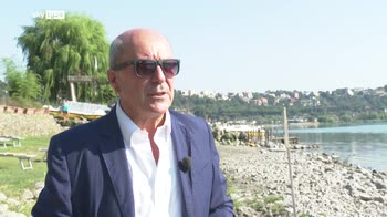 "Direttore, ci spiega cosa vediamo in questa fotografia?" "Esattamente quel manufatto di cemento che è alle mie spalle. Manufatto da dove, qualche decina di anni fa, ci si tuffava nel lago. L'ha fatto anche il sottoscritto. Oggi sotto c'è la terra". Al lago di Albano dove c'era l'acqua oggi c'è un prato con sdraio per prendere il sole. Negli anni '40 qui il lago lambiva addirittura il ciglio della strada. "Il lago si è abbassato di oltre 6 metri, raggiungendo il picco quest'anno". Il lago soffre, perde acqua ogni giorno. "Noi ci troviamo sull'arenile, significa che un anno fa qua c'era l'acqua, proprio dove abbiamo i nostri piedi in questo momento". "Ma anche 6 mesi fa qui c'era l'acqua. E questo è appunto il grido d'allarme che dobbiamo ascoltare. Il lago sta soffrendo in ogni sua manifestazione e si è abbassato ancora di più. Addirittura, oggi, il lago di Albano sta alimentando la falda dei Colli Albani e non è la falda a tenerlo in piedi". "Roma e Viterbo, nel vostro rapporto, l'ultimo rapporto, sono le due città a più alto rischio siccità di tutta Italia". "Assolutamente sì. 133 mm di acqua son quelli caduti, normalmente ne cadevano più di 350. È evidente che tutto questo genera la profondissima crisi". L'associazione dei consorzi per la tutela del territorio delle acque irrigue spiega che ormai noi siamo più di fronte ad una situazione eccezionale ma endemica. "I cambiamenti climatici negli ultimi 19 anni per 6 volte ci hanno costretto a situazioni come quella attuale. Quindi si sono strutturati oramai". Occorre, insomma, diminuire la percentuale d'acqua inutilizzata che finisce in mare, oggi, pari all'89% della pioggia che annualmente cade sull'Italia. "Coldiretti, ANBI, Consorzi di Bonifica hanno messo in piedi un piano laghetti: laghetti senza cemento, laghetti che non vanno a interferire con la vita dei fiumi ma con quella dei torrenti, che raccolgono l'acqua quando è in eccesso e la mettono, appunto, a disposizione degli usi potabili, energetici, agricoli e ambientali".