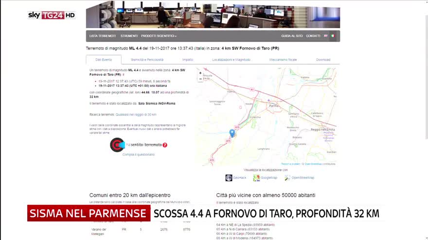Terremoto vicino a Parma, scossa di magnitudo 4.4