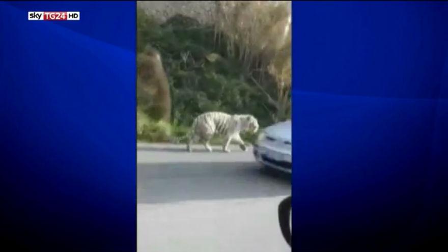 Tigre fugge da circo e vaga per le strade di Monreale, presa