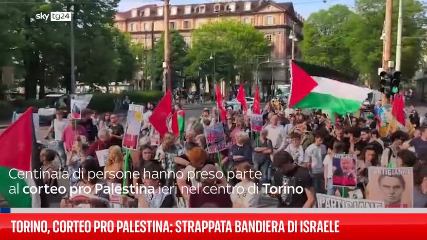 Centinaia di persone hanno partecipato ieri a Torino a un corteo pro Palestina. Durante la manifestazione è stata strappata e calpestata una bandiera israeliana davanti alla sede dell’Associazione Italia Israele. Il corteo si è concluso nei pressi dell’ex centro sociale Askatasuna, con slogan contro Stati Uniti e forze dell’ordine.