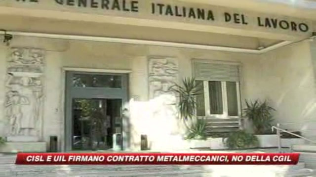 Sindacati divisi sul rinnovo del contratto dei metalmeccanici, siglato solo da Cisl e Uil, che prevede un aumento di 112 euro lordi per il triennio 2010-2012.