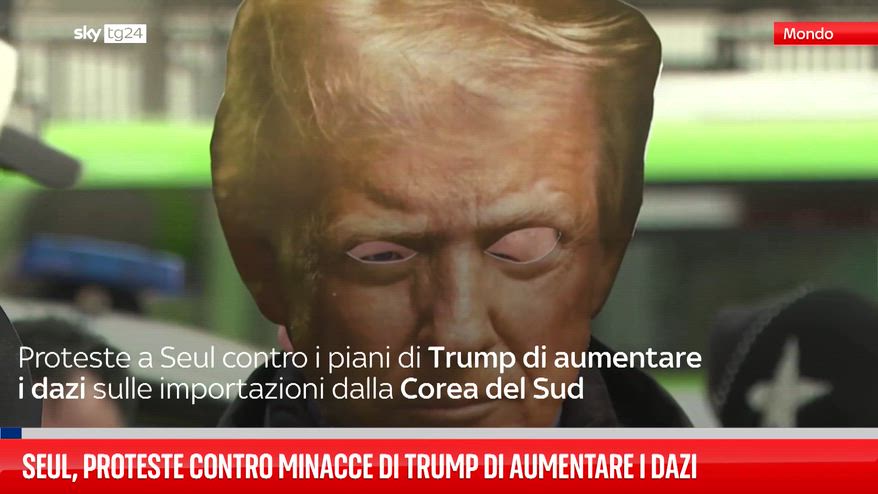 Un piccolo gruppo di dimostranti sudcoreani si è radunato martedì 27 gennaio nei pressi dell'ambasciata statunitense a Seul per denunciare i piani del presidente degli Stati Uniti Donald Trump di aumentare i dazi sulle importazioni dalla Corea del Sud. .