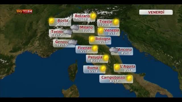 Meteo, alta pressione con tempo asciutto; nebbie al Nord