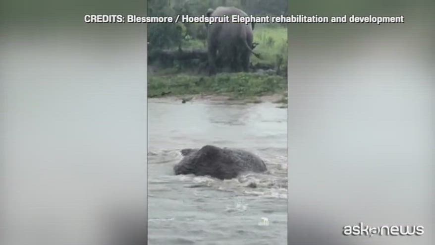 Sudafrica, gli elefanti alle prese con forti alluvioni