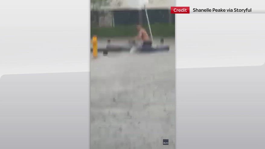 In Australia, a Woolloongabba, nel Queensland, un uomo ha trasformato un materasso gonfiabile in una piccola imbarcazione improvvisata, mentre le forti piogge hanno causato gravi inondazioni nell'area di Brisbane .