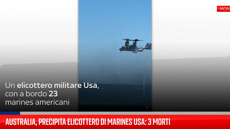 Un elicottero militare Usa, con a bordo 23 marines americani è precipitato durante un'esercitazione al largo di Darwin, in Australia. Si contano tre vittime