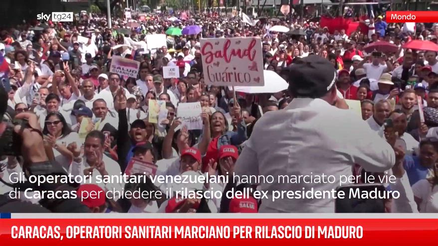 Gli operatori sanitari venezuelani hanno marciato per le vie di Caracas per chiedere il rilascio dell'ex presidente Maduro.