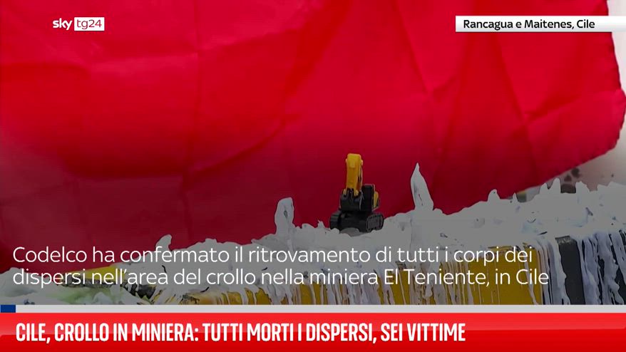Il 4 agosto, Codelco ha confermato il ritrovamento di tutti i corpi dei dispersi nell’area del crollo nella miniera El Teniente, in Cile. Il bilancio delle vittime è salito così a sei. L’incidente, avvenuto giovedì 31 luglio, ha intrappolato i minatori nella miniera di rame. Le squadre di soccorso hanno liberato 24 metri di cunicoli ostruiti per raggiungerli.