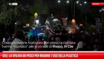 Creature marine realizzate con plastica riciclata hanno "nuotato" per le strade di Maipú, in Cile, per sensibilizzare l'opinione pubblica sull'inquinamento da plastica negli oceani.