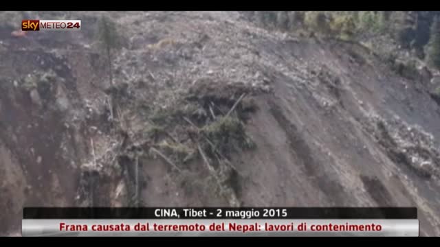 Si lavora su un tratto autostradale sepolto da una gigantesca frana; il crollo è stato causato da un terremoto 5.9 Richter associato alla scossa principale del Nepal.