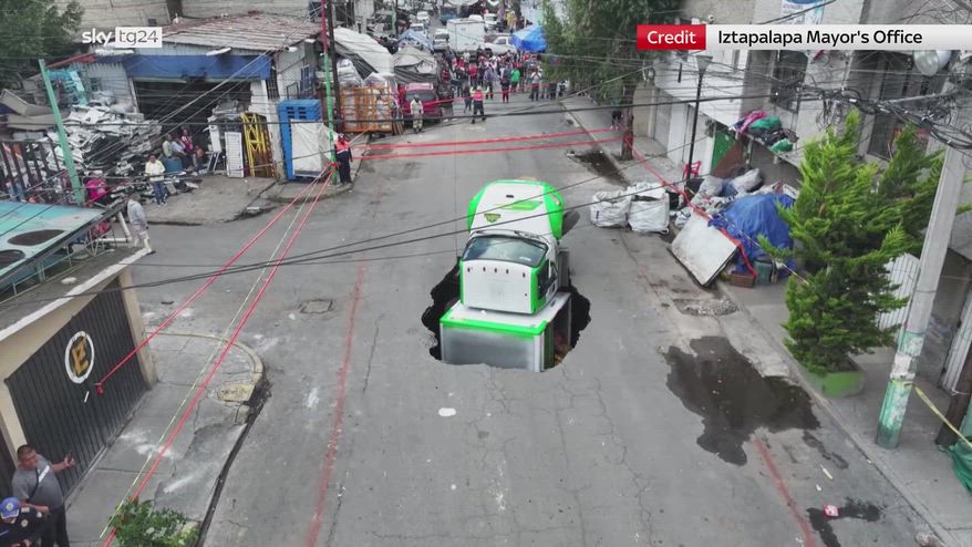 A Città del Messico un camion per la consegna di bibite gassate è precipitato in una voragine. Il veicolo è sprofondato con la parte posteriore rivolta verso l'alto sotto gli occhi dei residenti di Iztapalapa, il quartiere più popoloso della città.