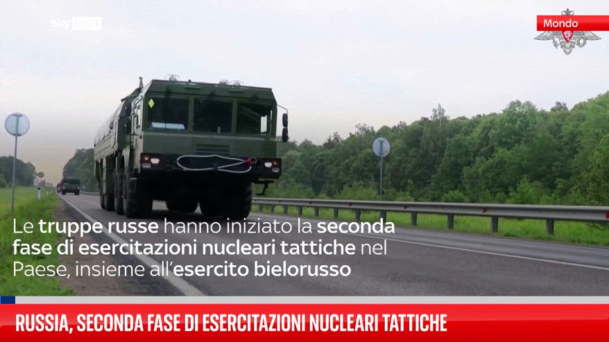 Al via la seconda fase di esercitazioni nucleari tattiche in Russia, alle quali partecipano anche unità dell'esercito bielorusso. Il ministero della Difesa di Mosca ha spiegato che lo scopo è quello di accertare la preparazione per l'impiego di armi volte a "garantire incondizionatamente la sovranità e l'integrità territoriale dello Stato dell'Unione" anche alla luce di una "situazione piuttosto tesa nel continente europeo, provocata ogni giorno da nuove decisioni e azioni ostili delle capitali europee e di Washington".