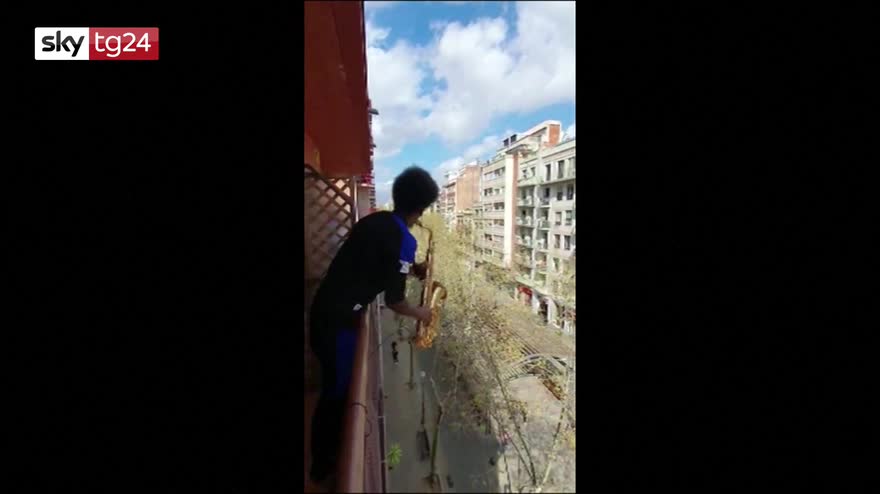 Coronavirus, suona il sax dal balcone a Barcellona