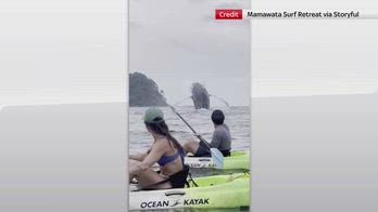 A Playa Escondido, in Costa Rica, un gruppo di kayakisti ha ripreso una megattera e il suo cucciolo mentre emergevano dall'acqua. Il filmato ha catturato il salto della balena mentre fuoriusciva dall'acqua e si tuffava di nuovo.