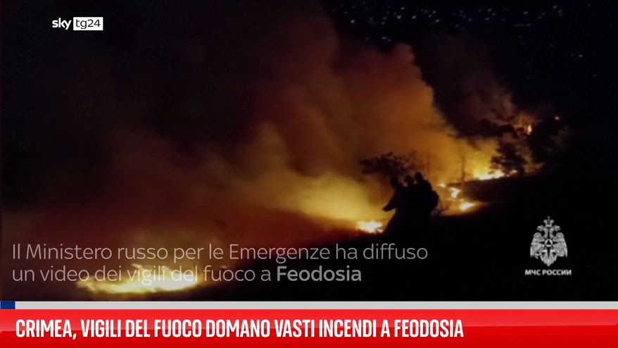 Le autorità russe hanno pubblicato immagini dei vigili del fuoco impegnati a domare vasti incendi a Feodosia, in Crimea. Gli incendi, estesi su circa 80 ettari, sono stati alimentati da vento forte e condizioni di estrema siccità.