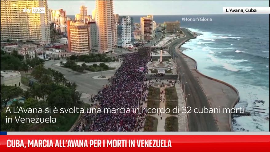 A L’Avana si è svolta una marcia in ricordo di 32 cubani morti in Venezuela. Le vittime sono decedute durante l’operazione militare degli Stati Uniti per catturare Nicolás Maduro a Caracas. Alla cerimonia hanno partecipato il presidente Miguel Díaz-Canel e i vertici del Partito comunista. Militari hanno sfilato sul lungomare del Malecón con le foto dei caduti. Migliaia di cittadini si sono uniti al corteo. Il giorno prima si era tenuto un primo omaggio ufficiale all’aeroporto José Martí. Sono previste commemorazioni in tutte le capitali provinciali e sepolture nel pomeriggio.