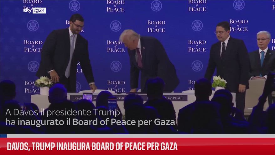 A Davos il presidente Trump ha inaugurato il Board of Peace insieme a una ventina di leader. Tra i firmatari erano presenti Viktor Orban, Javier Milei e la presidente del Kosovo Vjosa Osmani. Il genero di Donald Trump, Jared Kushner, ha poi presentato il progetto di ricostruzione della Striscia di Gaza.
