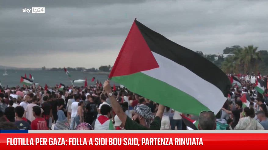 A Sidi Bou Said, vicino Tunisi, migliaia di persone si sono radunate per sostenere la Global Sumud Flotilla. La partenza della flotta verso Gaza è stata posticipata per motivi meteorologici e logistici, tra cui la riparazione dei danni provocati dall’attacco di due droni che hanno preso di mira le navi chiave del convoglio.