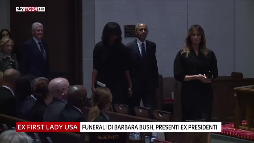 Funerali di Barbara Bush, presenti Obama, Clinton e Melania