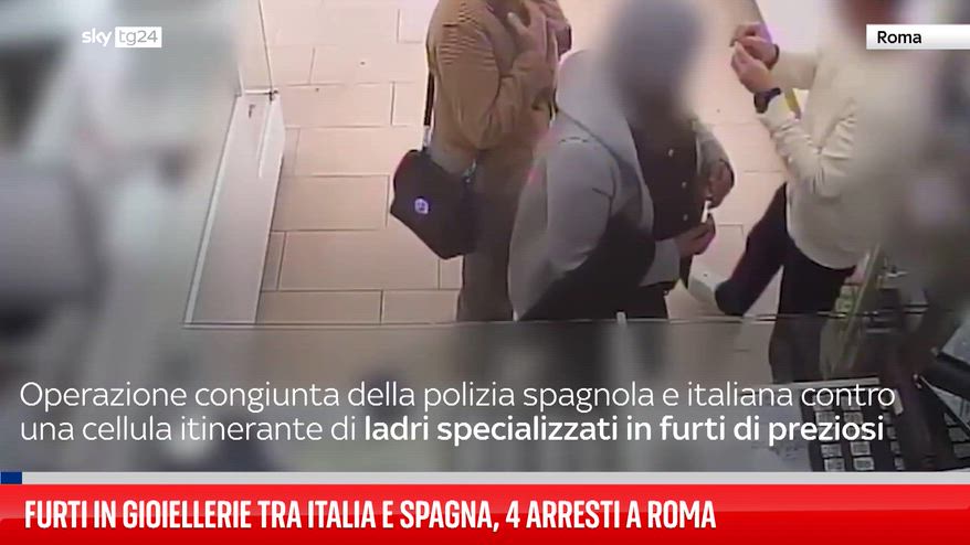 La polizia spagnola e italiana hanno smantellato una cellula itinerante di ladri specializzati in furti di gioielli, arrestando quattro persone residenti a Roma. Il gruppo è ritenuto responsabile di 21 colpi in gioiellerie in tutta la Spagna, alcuni risalenti a 10 anni fa, per un bottino complessivo di oltre 500mila euro. Gli arrestati raggiungevano la Spagna dall'Italia, non lasciavano tracce negli hotel, cambiavano frequentemente auto e telefono e percorrevano ogni giorno centinaia di chilometri tra diverse località. Per mettere a segno i furti, due donne entravano nella gioielleria e mentre una distraeva il dipendente l'altra sottraeva i gioielli dal bancone del negozio.