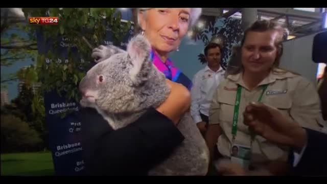 G20, Christine Lagarde abbraccia un koala