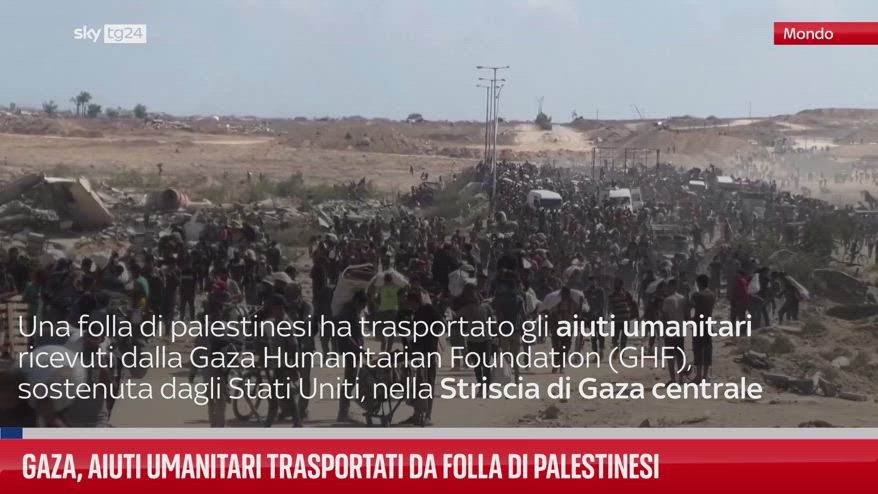 Una grande folla di palestinesi ha trasportato gli aiuti umanitari ricevuti dalla Gaza Humanitarian Foundation (GHF), sostenuta dagli Stati Uniti, nella Striscia di Gaza centrale. Il ministero della Salute di Gaza ha dichiarato che altre sei persone sono morte di fame o malnutrizione a Gaza, portando a 175 il numero di morti per quella che le agenzie umanitarie internazionali definiscono una carestia in corso.