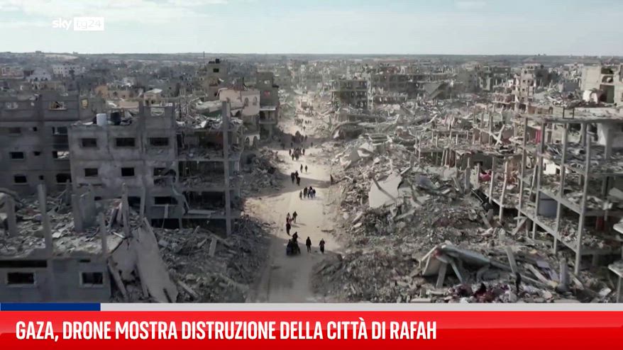 Un drone ha sorvolato la Striscia di Gaza riprendendo la distruzione subita dalla città di Rafah e mostrando la distesa di macerie e detriti presenti sul luogo. L’accettazione di una tregua da parte di Hamas e Israele ha interrotto il conflitto, che dal 7 ottobre 2023 ha provocato 47mila morti e l’evacuazione di 2,3 milioni di palestinesi. .