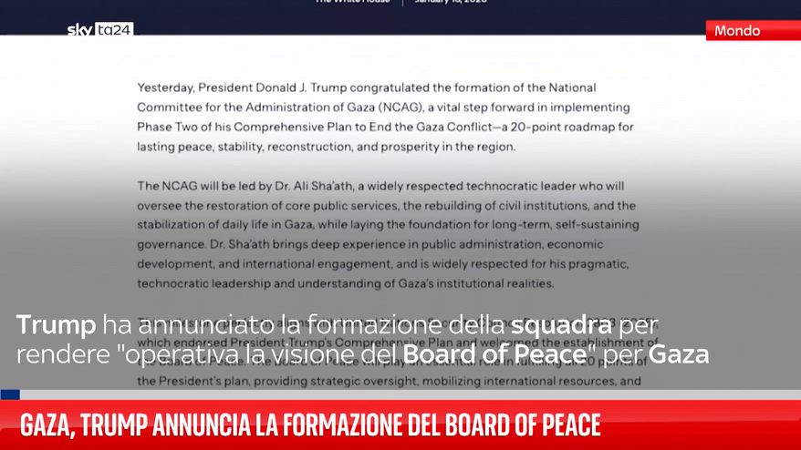 Donald Trump annuncia la formazione del board esecutivo per rendere "operativa la visione del Board of Peace" per Gaza.