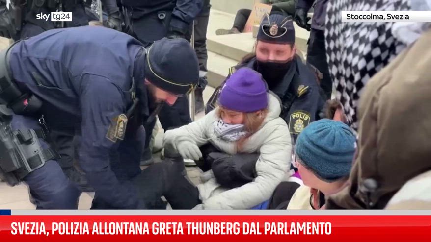 Nel terzo giorno di proteste, la polizia svedese ha allontanato l’ambientalista Greta Thunberg, che stava bloccando i principali ingressi del parlamento insieme ad altri attivisti per il clima .