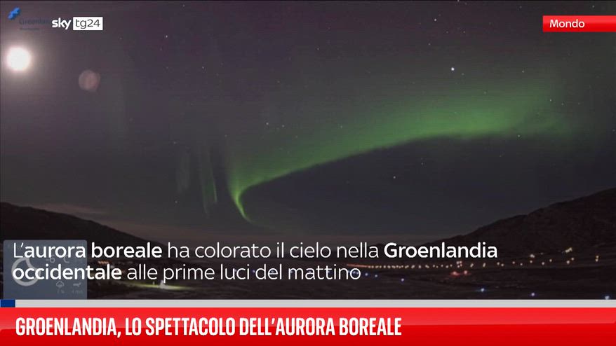 Una telecamera dell'aeroporto di Kangerlussuaq, nella Groenlandia occidentale, ha ripreso l’aurora boreale mentre colorava il cielo alle prime luci del mattino .