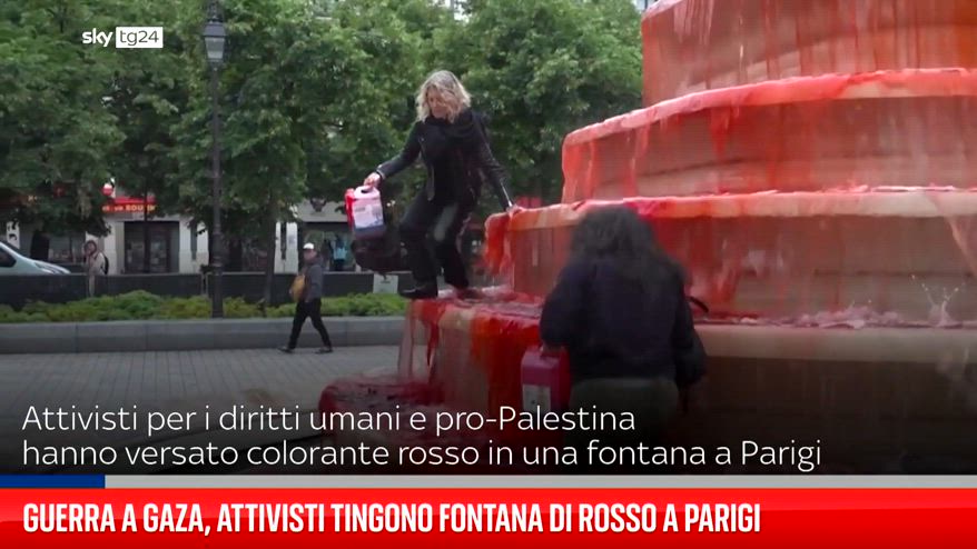 Mercoledì 28 maggio attivisti per i diritti umani e pro-Palestina hanno versato colorante rosso in una fontana a Parigi per denunciare il “bagno di sangue” a Gaza. L’azione è stata rivendicata da Greenpeace, Oxfam, Amnesty e Medici del Mondo. Chiedono un cessate il fuoco immediato e sanzioni contro Israele.