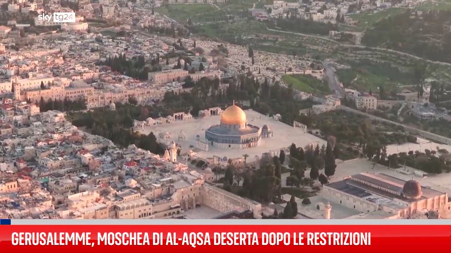 La moschea di Al-Aqsa, a Gerusalemme, appare deserta nell'ultimo venerdì di Ramadan, a causa delle restrizioni all'accesso dei fedeli. Al-Aqsa è rimasta pressoché vuota negli ultimi giorni, mentre prosegue il conflitto con l'Iran. Il Comando del Fronte Interno israeliano ha annunciato un divieto nazionale di assembramenti pubblici nel timore di un'imminente rappresaglia iraniana.