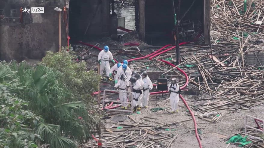 Gli agenti dell'Unità di Identificazione delle Vittime di Disastri di Hong Kong sono al lavoro per recuperare i corpi delle vittime all’interno del Wang Fuk Court. Le autorità continuano a setacciare i palazzi residenziali, dove hanno trovato corpi di residenti nelle trombe delle scale e sui tetti.
